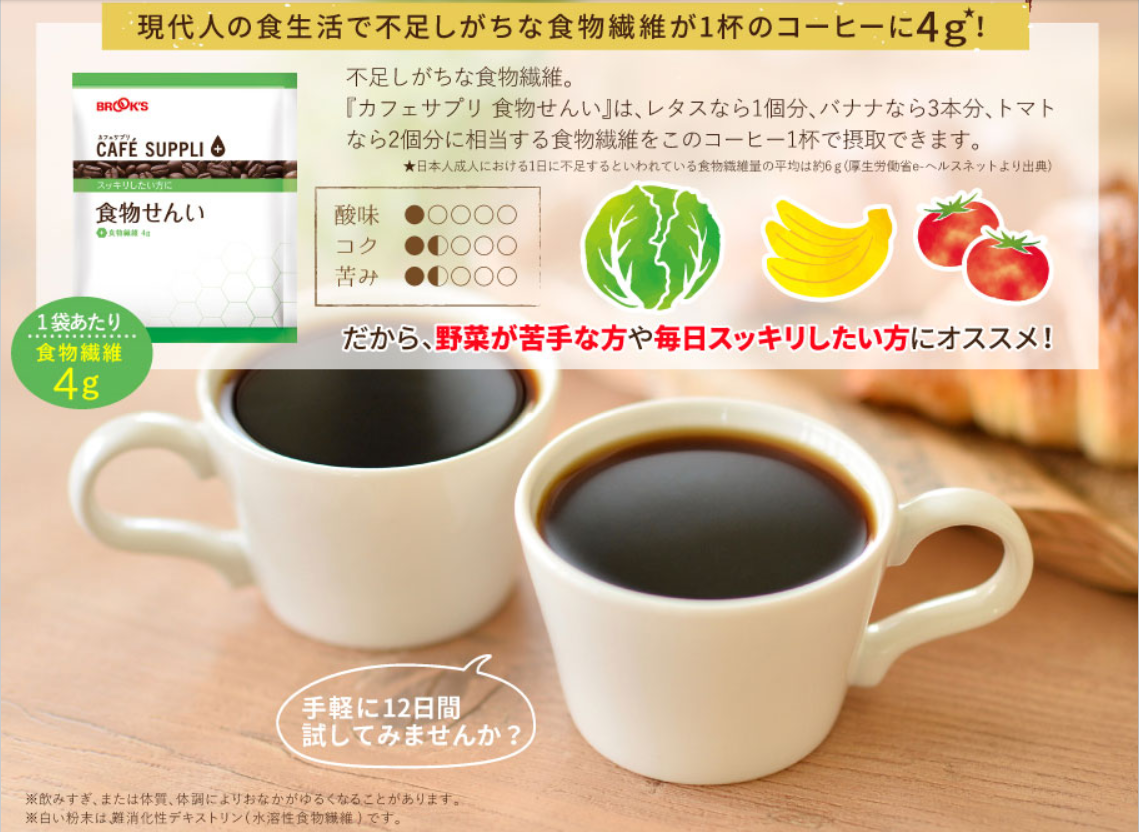 カフェサプリ 食物せんいは、毎日続けることを前提に設計されています。個包装タイプで持ち運びしやすく、職場や外出先でも簡単に摂取可能です。また、溶けやすくダマになりにくいため、忙しい朝でもストレスなく準備できます。こうした細かな配慮が、長く続けられる理由のひとつです。
